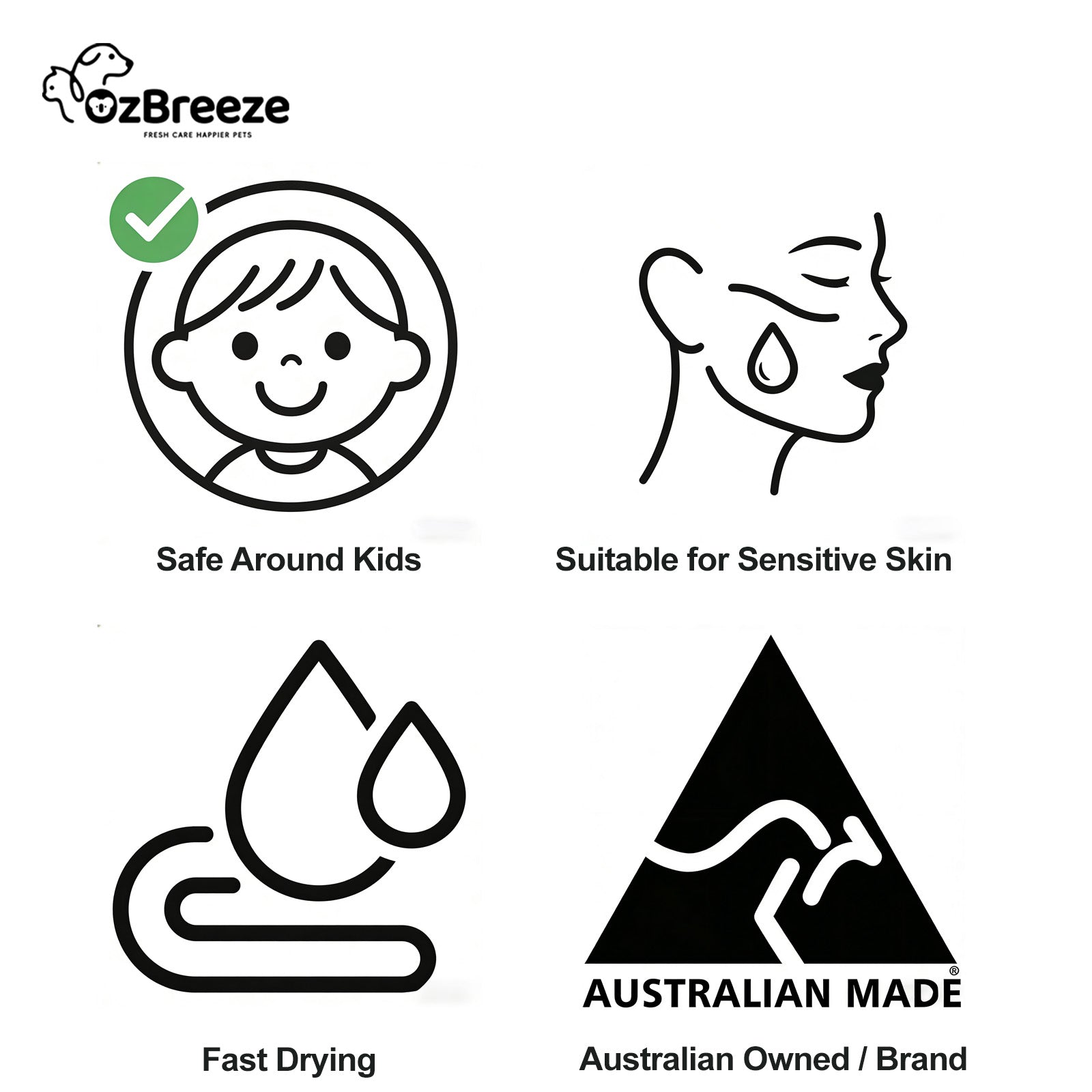 - 100% ALCOHOL FREE & LICK-SAFE FOR AUSSIE PETS “Formulated without harsh alcohols or chemicals. Our PEG-based formula is gentle and safe even if accidentally licked by your dog or cat. Perfect for puppies, kittens, and pets with sensitive skin or allergies.”